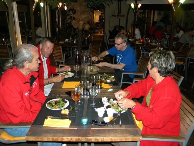 My friend Marc, with the blue shirt, is trying to fill his stomach with strange mixtures involving bread and pepper. He's still waiting for his food!