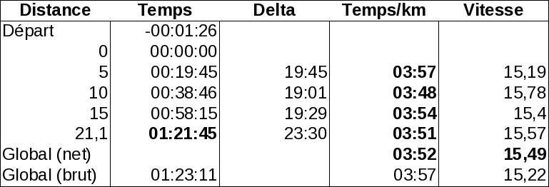 Bonne régularité. Sans surprise, pour obtenir ce résultat il faut relancer régulièrement, avoir l'impression d'accélérer tout le temps. Ce n'est qu'une impression.