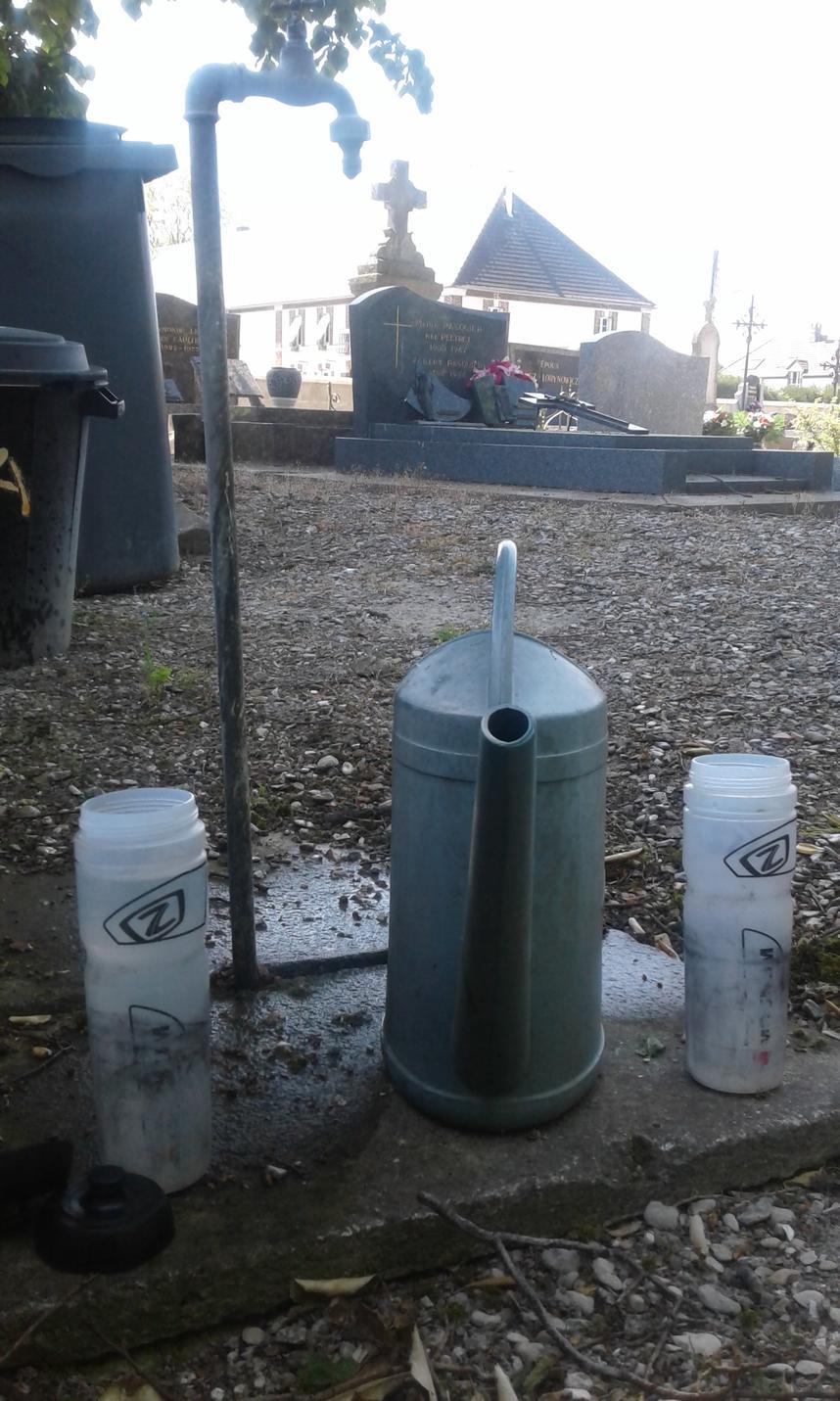 Enfin, un robinet ! Effet de bord intéressant des bouquets de fleurs sur les monuments funéraire, on trouve généralement des robinets à proximité.