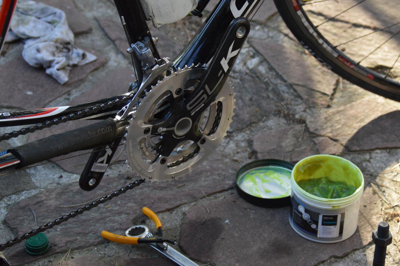 Ce truc était en train de rendre l'âme. Il aurait peut-être juste fallu changer les roulements, mais on en a profité pour changer tout le pédalier. Hop.