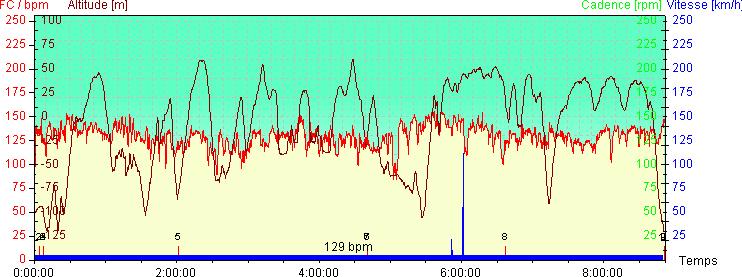 Sur cette courbe on voit bien l'accélération aux alentours de la 5ème heure juste avant la côte dite "La Salope". Hum...