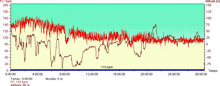 Cette courbe extraite de mon cardio montre bien que sur la fin, heu, comment dire, j'avançais plus.