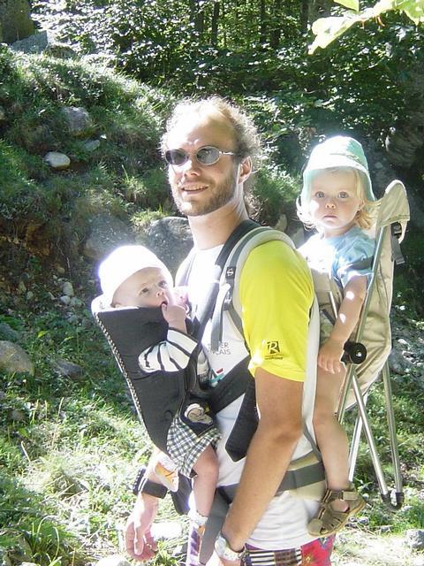 Mes deux filles (4 et 19 mois) sur leur fidèle monture. Les connaisseurs n'auront pas reconnu l'âne catalan qui les porte vaillamment, pourtant typique de la région où est prise la photo.