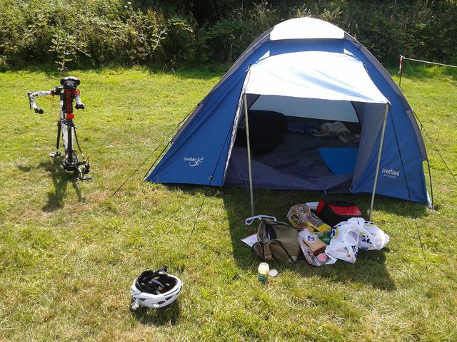 Getting ready in the camp site at Debden. With my good old tent, which bravely served me for two 6-days and many other (music-related) events.