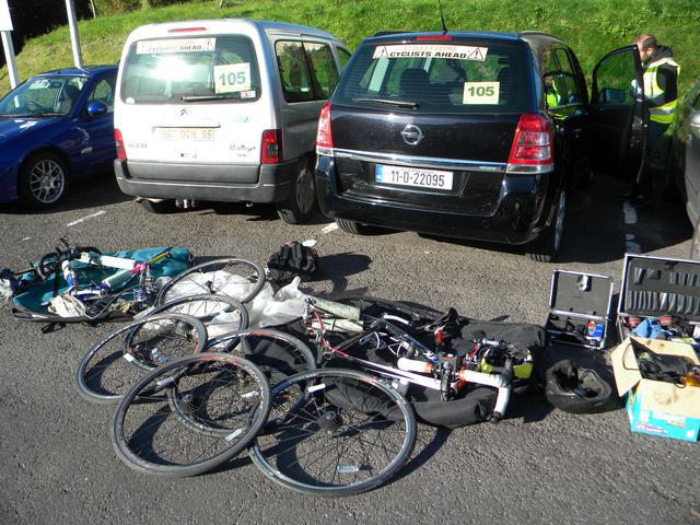 2 bikes plus one pair of spare wheels. What a mess.