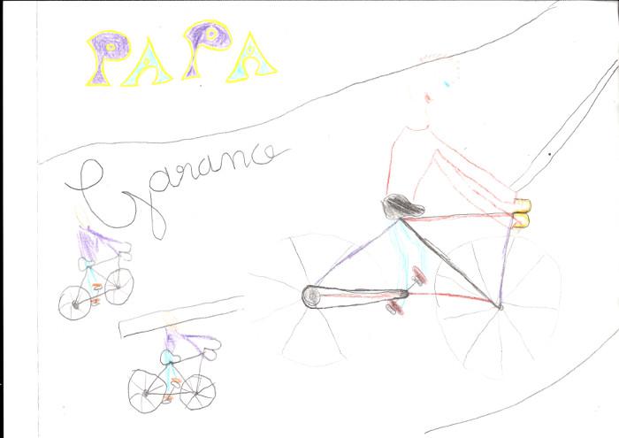 The race imagined by Garance. Her daddy is in front of the other racers. Reality is somewhat different, but I like this drawing anyway.