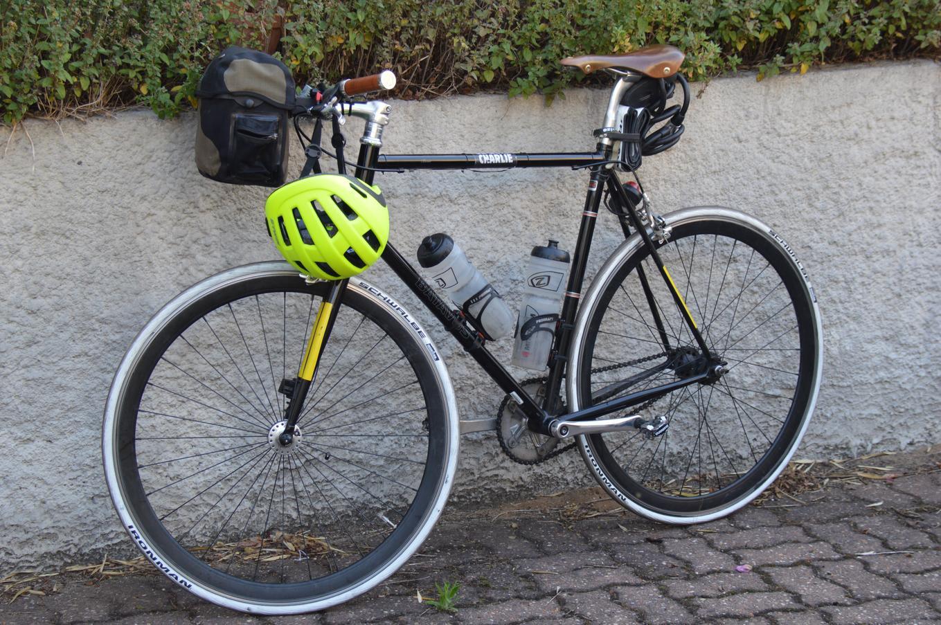 Mon fixie de vrai faux hispter, tuné pour la longue distance.