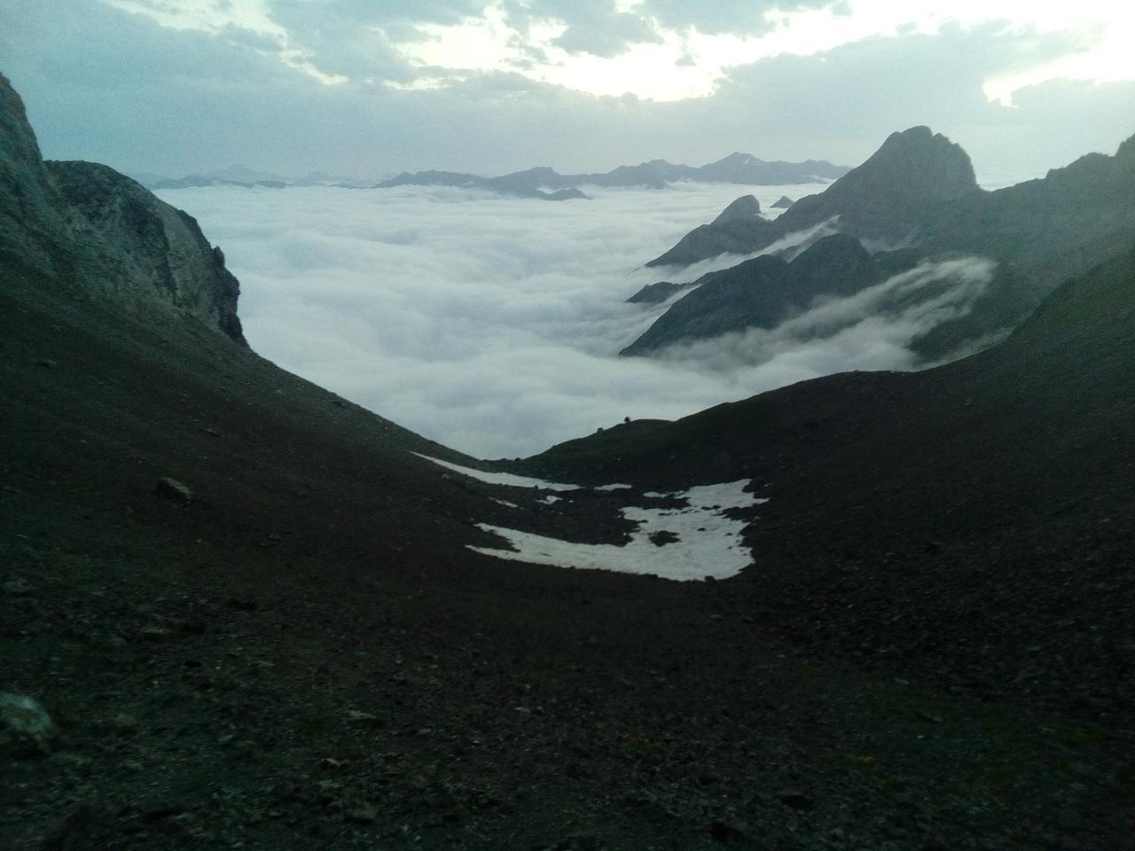 Night is coming, and we're going downhill. So in those clouds, we might not see very far. It can be a real pain.