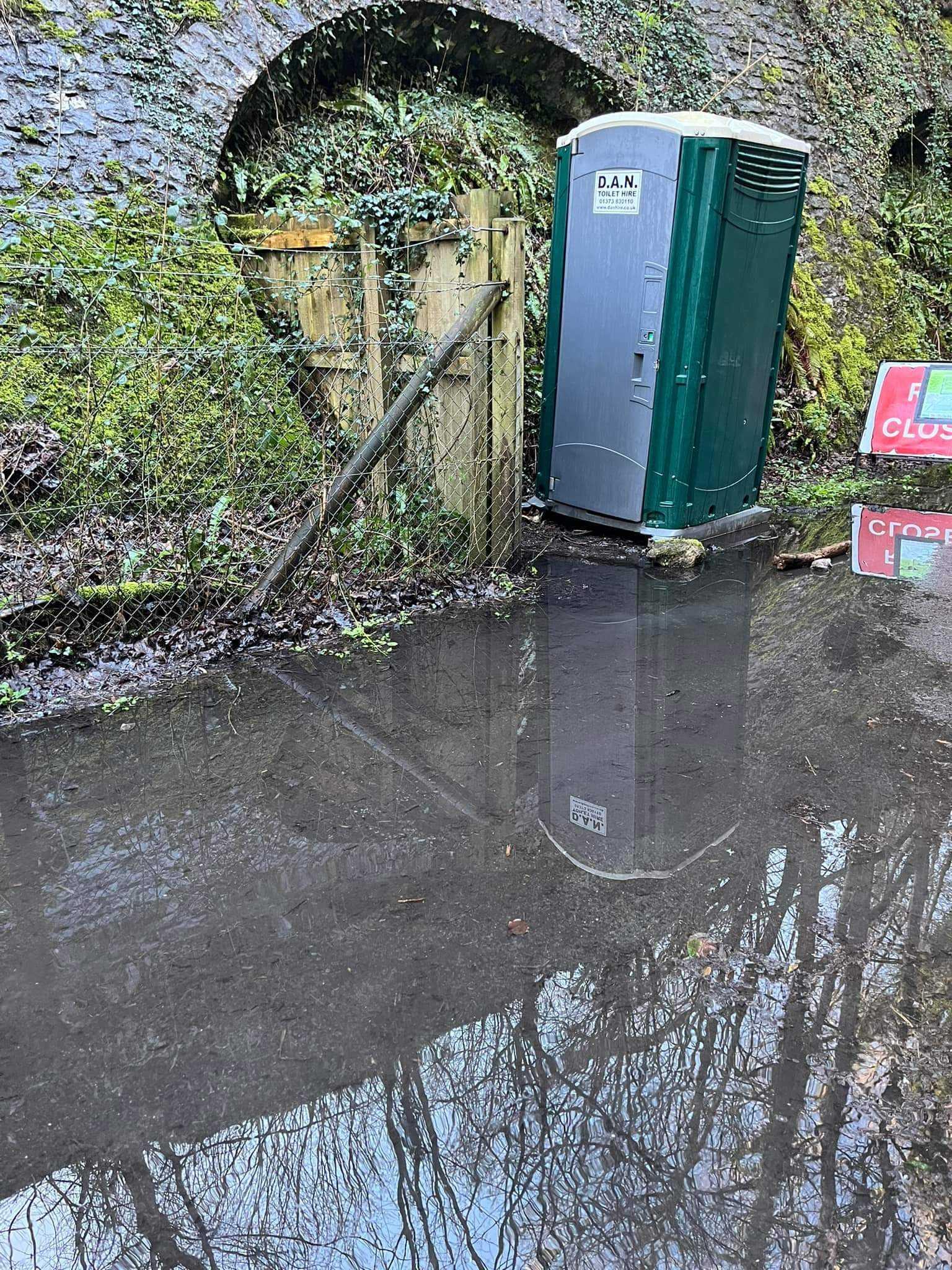 Le bloc sanitaire. Judicieusement placé. Bien faire attention à marcher sur la pierre en sortant, sinon plouf.