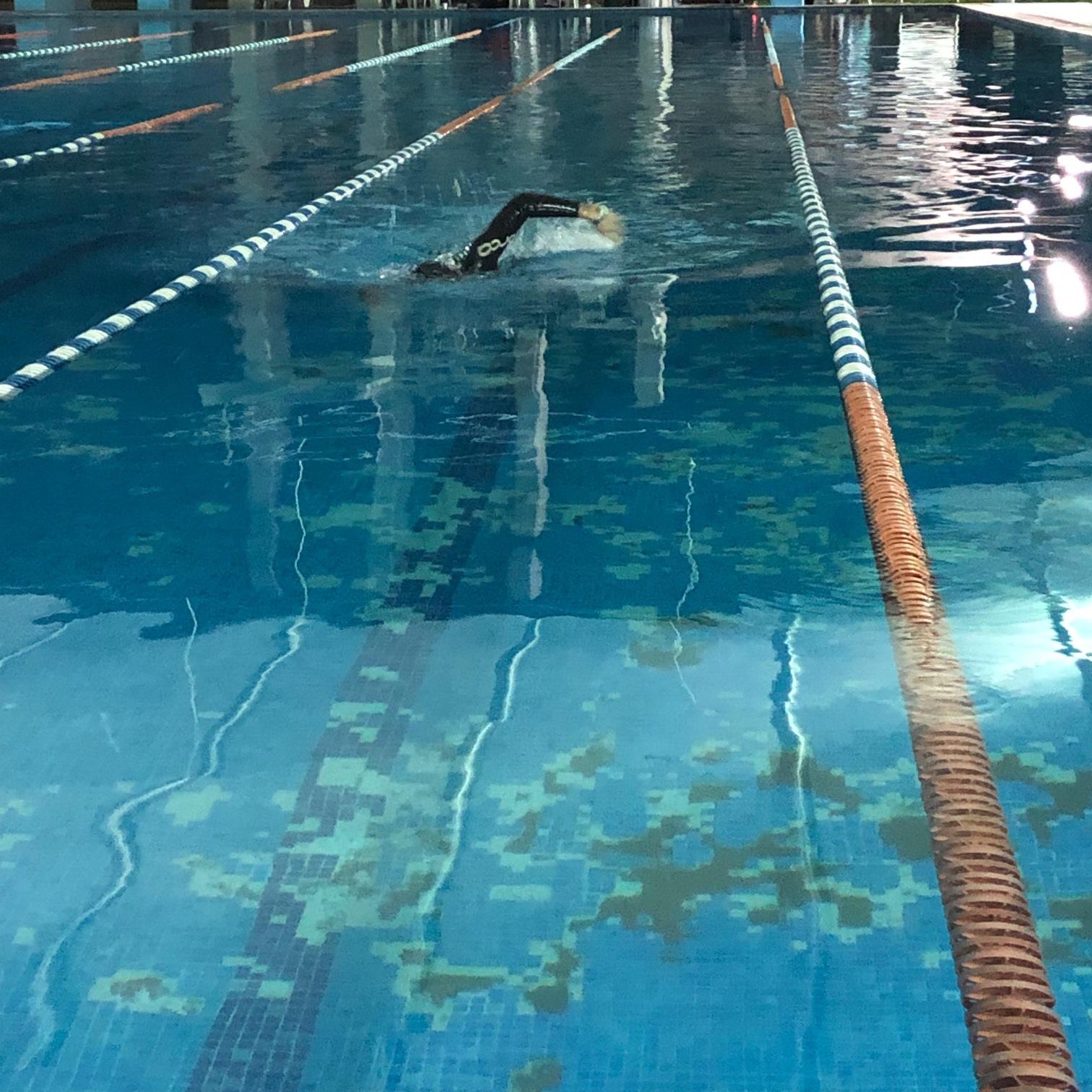 The attentive observe can notice the water is almost still. This is because not many people swim, late in the night.