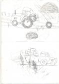 Et quand il est sorti de l'hôpital, c'est des tracteurs que j'ai beaucoup dessinés ! il avait 2 ans. Il faisait la paille.