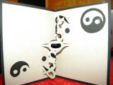 Alors, possible ou pas, de faire un ambigramme en kirigami ? J'ai pensé au(x) mot(s) YingYang. Et si le pliage n'est pas des plus complexes, c'est bien le découpage du mot "(Y)ang" qui forme, en creux, le mot "Yin".